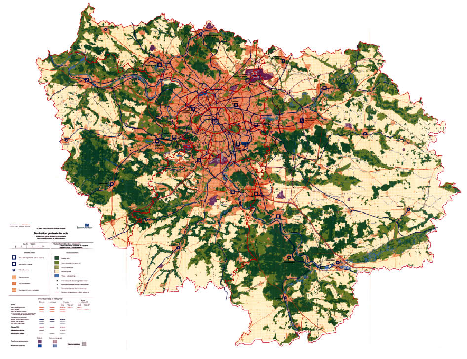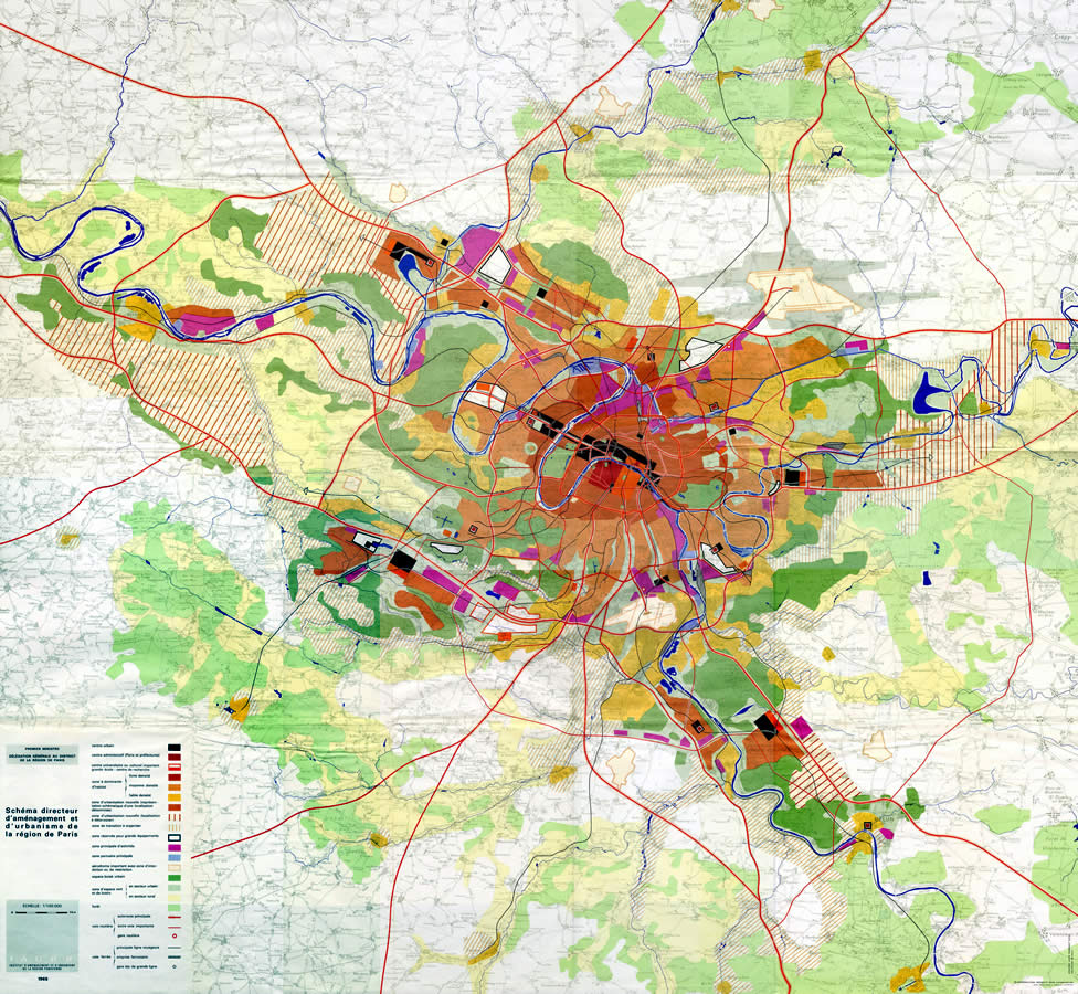 Carte de synthèse du SDAURP (Schéma directeur d'aménagement et d'urbanisme de la région de Paris) de 1965.