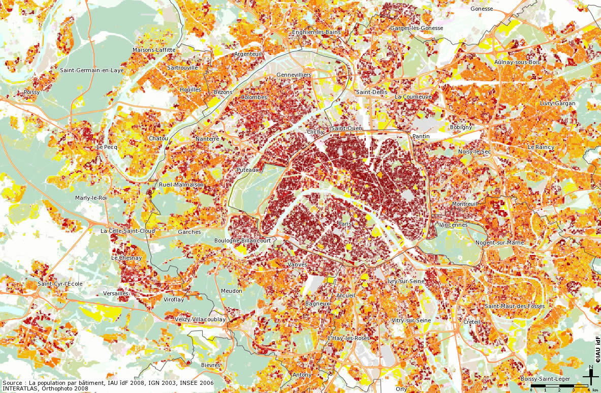 La population par bâtiments ÎdF 2008, IGN 2003, INSEE 2006 Interatlas, Orthophoto 2008
